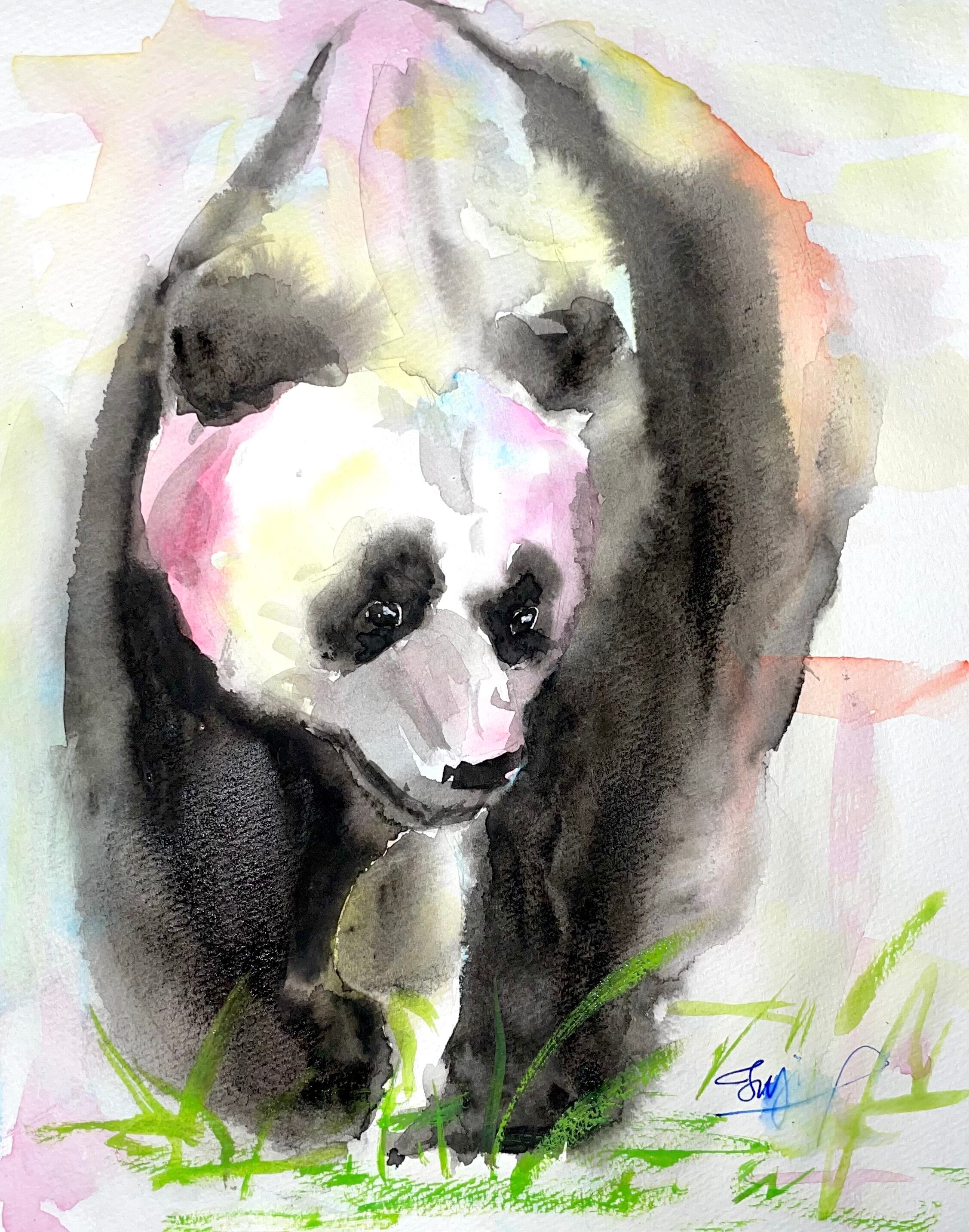 モノクロのパンダをカラフルに表現したいと思い、半分あそびで描いていました。