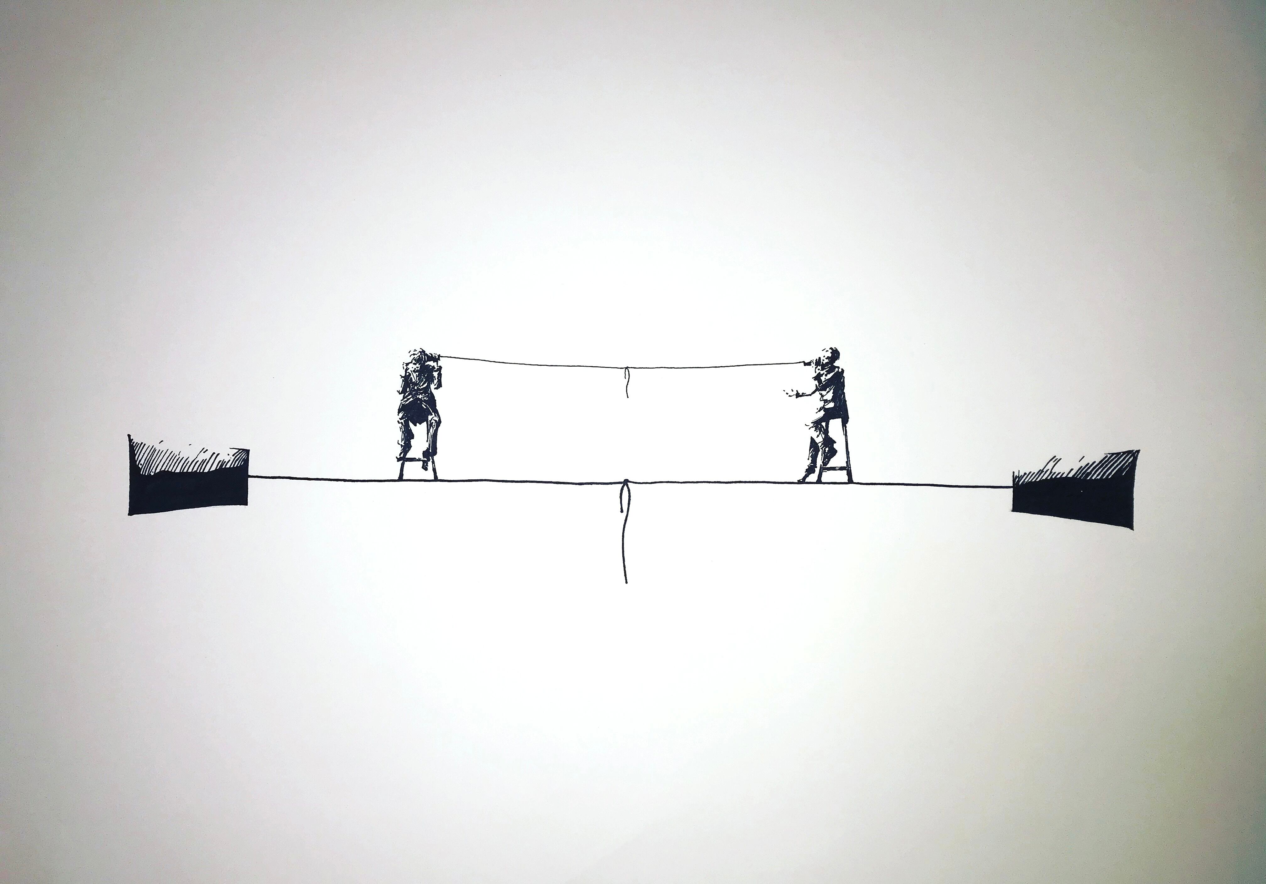 一度切れた糸電話をムスビ直すこと、一度断たれた人や地域の交流を回復することを表現しました。